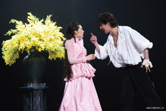 そんな国王一家の言わば家庭内のいざこざの巻き添えとなり、ハムレットに突き放され、夢見た幸せを打ち砕かれる北 香那のオフィーリアは、自分の意思もしっかり持った“溌剌としたお嬢さん”が壊れゆく姿に胸を抉られる。正気を失ったオフィーリアが意味深長な花言葉と共に色とりどりの花々を配る場面はよく知られているが、今回はとある花がオフィーリアの象徴として登場し、色彩を抑えた舞台上で忘れられない印象を残す。