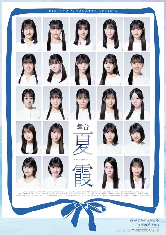 2023年6月に結成された「僕が見たかった青空」がグループ結成以来初めて舞台公演が決定し、舞台「夏霞〜NATSUGASUMI」(7月11日〜21日 シアター1010)の舞台発表記者会見にメンバー23人が出席しました。