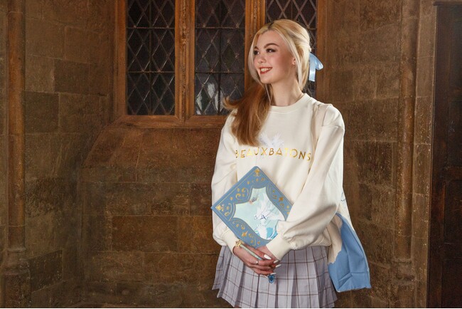 魔女や魔法使いが、自分の寮の制服に身を包んでいないときでも、その服装は魔法ワールドへの忠誠心を示しています。ホグワーツ特急がプリントされたTシャツや、排気口から炎が出るハグリッドのバイクなど、新しいトラベルシリーズは魔法ワールドの服装に輝きを添えます。よりエレガントなものをお探しの方には、ボーバトンのクレスト・スウェットシャツが最適です。白馬の前に「ボーバトン」の金箔文字、背中には「Above the Clouds(雲の上)」の青い文字とともに、息をのむような馬の飛翔シーンが描かれています。