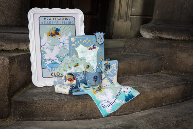 ボーバトン校の生徒たちの優雅さをさらに表現するために、新しいトートバッグには魅力的な馬車のプリント、複雑なプリントのディテール、そして、ゴールドの箔押しが施され、どの生徒にとってもパーフェクトなアクセサリーとなっています。また、ボーバトン魔法アカデミーのプレミアム・ノートブックと洗練されたペンは欠かせません。