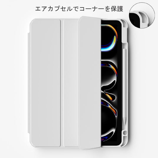 【新型iPad Air(M2) / Pro (M4) 対応ケース】”エアコート”を発売。フロントカバーが取り外し可能な、ApplePencil用スロット付背面クリアシェルケース