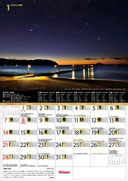 2024年ビクセンオリジナル天体カレンダービクセンでは毎年、皆さまから募集した天体写真と天体情報を満載した、オリジナルカレンダーを発行しています。そこで今年も、来年2025年版のカレンダーに掲載する写真を広く皆さまから募集いたします。