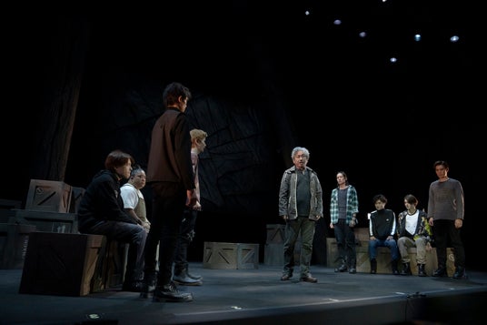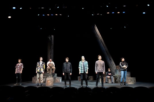 本作は、鈴木がジュール・ヴェルヌによる不朽の冒険小説「十五少年漂流記」を基に、舞台を現代にうつし、いくつかのキャラクターを統合した登場人物(役名は原作を踏襲/年齢は原作の10代に限らない設定)で、極限状態に置かれた国籍もバラバラの学生たちが自主的にルールを定め生き抜く姿を描く作品。主演の荒井はフランス人のブリアンを演じ、遭難した孤島で集団生活をするために8人が決めた最初のリーダー・ゴドンを田中が、ブリアンの弟であるジクを大友が、ブリアンを支持するバクスタを瀬谷が、ブリアンと対立しがちなドニフンを嘉島が、ドニフンに賛同するクロスを翔が、同じく賛同するウィルコックスを飯原が、見習い水夫のモコを富栄ドラムが、そして別の船の操縦士エバンズを駒田が演じる。ゲネプロ後の囲み取材で鈴木が、「十五少年漂流記」を本作『ルール』としてつくりあげたことについて、「『十五少年漂流記』を読み、今この時代について考えました。(そのうえで)“ルール”と“自由”については僕自身もずっと考えていたことなので、それをこの芝居にぶつけられたらなと思い、上演台本を書き始め、思い切って『ルール』というタイトルにしました。いまの時代に合うようにつくっているし、そうでなければいけない、とも思います。“ルール”というもの、それと“自由”というものについて考えていただければいいのかなと思います」と話した本作。原作は1888年に発表されたものだが、2024年のいま世界で起きていること、自分が生きる世界のことを考えずにはいられない作品となっており、その中で俳優たちがしっかりと役を生きる姿が印象的。キャリアも年齢もバラバラなキャストが揃っているが、その一人ひとりが持つものが役にも反映されていて、それぞれの存在が際立っている。また、風景や天候も表現したミュージシャンの大嶋吾郎による音楽も魅力的で、芝居、演出、台詞、音楽と一つひとつが強い魅力を放ちながら、けれどすべてががっちりと結びつき作品としての大きなエネルギーになるような舞台に仕上がっていた。囲み取材で荒井は「年齢層もそうですし、初舞台から大先輩まで(キャリアも)幅広いキャストで稽古してきました。あとは自分たちを信じて、スズカツ(鈴木)さんの演出でできあがったこの世界観を全力でがんばるだけです」、嘉島は「客席に近いところでのお芝居もあるので、お客様の反応も楽しみにがんばりたいです」、駒田は「荒井くんも言ったようにいろんな人たちが集まって、スズカツさんを筆頭にいろんなことを試しながら、苦労しながら、悩みながらやれたと思います。早く幕を開けて、お客様の感じを知りたいです」、ドラムは「初めての舞台で、僕が喋っているところを初めて観る方もいると思います。これからの役者人生をかけて本気で向かっていきたいです」、田中は「一か月間稽古してきたことを信じて、お客様にぶつけるだけです」、飯原は「絶対全公演ミスなしで演じきるので、お客さんは安心して来てください……!」、瀬谷は「アドリブもけっこうあるので、そこも楽しんでいただければ」、翔は「初舞台なので楽しめたら」、大友は「みんなで話し合ってどうしていくか決めることもありました。細かいところまでこだわっているので、そこもぜひお客様に感じ取っていただけたら」と話した。また本作は、U-22チケット(1,500円)やシニアチケット(65歳以上対象/2,000円)のほか、文化庁 劇場・音楽堂等における子供舞台芸術鑑賞体験支援事業により小学生〜18歳までは【無料】で鑑賞できる取り組みも参加している。ぜひこのような機会も活用して劇場に足を運んでほしい。