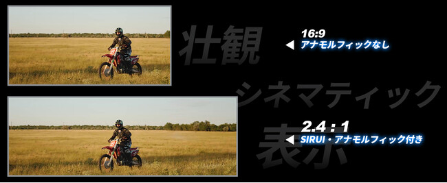 【2.4:1 の映画比率】従来のレンズの撮影比率が16:9であるのに対し、SIRUIアナモフィックレンズは独自の変形構造により視野が水平方向に1.33倍広がり、後から押し出して成形されます。これにより、2.4:1のワイドフォーマット映画標準比率が実現され、画質を損なうことなく、より映画のような外観が実現します。