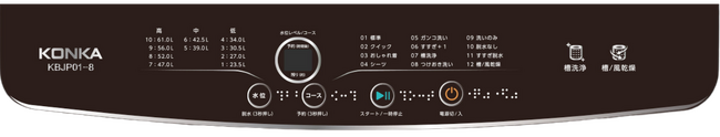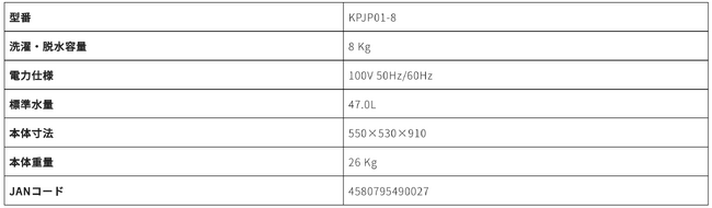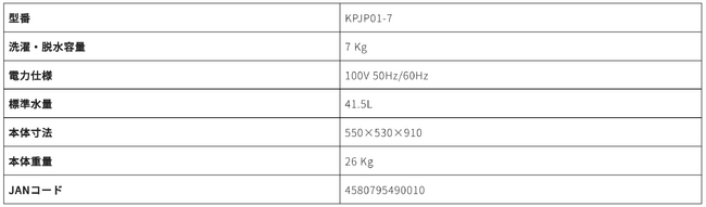 7kg(KBJPO1-7)・8kg(KBJPO01-8)の2型式。選べる12の洗濯コース、10段階の水位設定、見やすい操作性パネル搭載など・・・・・・・・
