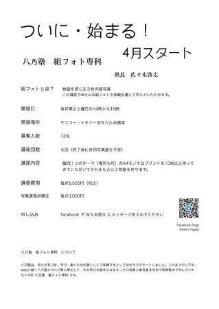 4月9日スタート「八乃塾 組フォト専科」(全6回シリーズ・佐々木啓太先生)