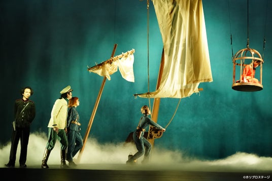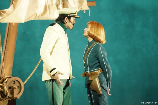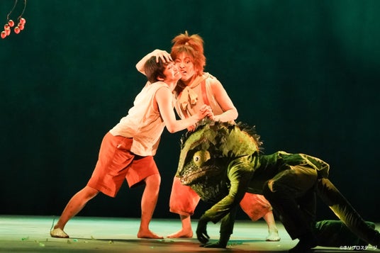 また舞台オリジナルの、船長のダイスとモンスリーのあるやり取りがなんともコミカルでキュート。演じる宮尾俊太郎(意外なハマり役!)と門脇 麦、ふたりの得意分野を生かした名シーンになりそうだ。さらにコナンとラナがラオ博士に救われる砂漠のシーンは、ダンサー陣の表現の幅広さ、底力に改めて脱帽。またおじいとラオ博士という対極の人物を見事に演じ分けた椎名桔平に、ヒールとしての残酷さとともに、色気をも感じさせるレプカ役の今井朋彦の存在感も光る。