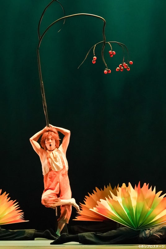 インバル作品の強みは、アニメだからこそ描けたと思われるシーンも、さまざまな手法――それは得てしてアナログな魅力を持ったもの――で表現してしまう点にあるだろう。例えばコナンとジムシーの出会いのシーン。負けず嫌いなふたりの勝負が、演じる加藤清史郎、成河の奮闘はもちろん、そこにダンサー陣が交わり、時に草に、時に動物に、時にふたりの足に(!)なると、なんとも見応えたっぷりのショーへと一変してしまう。もちろんアニメ版でワクワクさせられた、スピード感とコミカルさはそのままに、だ。
