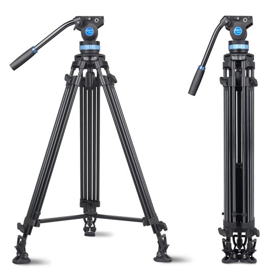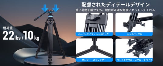 【頑丈なアルミニウム合金三脚】強力な伸縮式デュアルレッグチューブとセンタースプレッダーを備えたアルミニウム合金構造のビデオ三脚は、信頼性の高い安定性と最大22.0lb / 10kgの重量をサポートします。