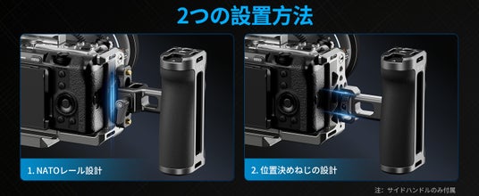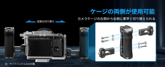 撮影スタイルに合わせて選択できるサイドハンドルは、縦方向の位置調整や左右どちらへの設置も自由自在で、お好みに合わせて取り付けられる利便性を提供します。左利きでも右利きでも、グリップと射撃アプローチを最適化することができます。
