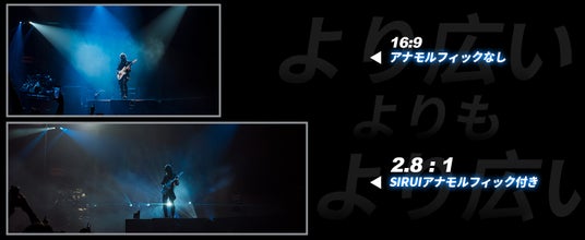 このアナモルフィックレンズは、1.6倍のスクイーズファクターを持ち、3:2の撮影ではアスペクト比が2.4:1になります。センサーを16:9に設定すると、アスペクト比は2.8:1になり、IMAXフォーマットと同等のプレミアムで没入感のある視聴体験が得られます。