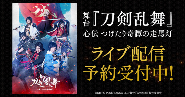 合同会社DMM.com(本社:東京都港区、会長 兼 CEO:亀山敬司 以下「DMM」)は舞台『刀剣乱舞』心伝 つけたり奇譚の走馬灯の2024年6月9日(日)12:30公演/18:00公演、7月21日(日)12:30公演/18:00大千秋楽公演を「DMM TV」にてライブ配信いたします。2024年6月2日(日)よりDMM TV特設サイトにてライブ配信の予約販売を開始しています。ライブ配信は公演終了後も楽しめる見逃し配信付きです。