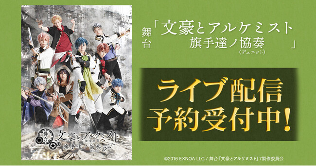 舞台「文豪とアルケミスト 旗手達ノ協奏(デュエット)」 DMM TVで独占ライブ配信決定!
