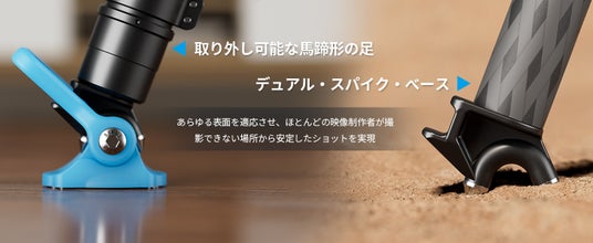 【馬蹄形フィート&デュアルスパイク】を備えた三脚は平らな地面でもうまく機能し、安定性が向上します。さらに、馬蹄形の足のない三脚は柔らかい地面でも効果的です。また、SIRUI DT-06 TRIPOD DOLLYや他のユニバーサルアクセサリーとの互換性もあります。