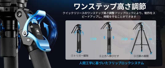 【ワンステップの高さ調整】この頑丈な三脚 SVT75 Pro は、三脚の脚を簡単にセットアップおよび変更できるワンステップのフリップロックを利用して、シンプルさとスピードを念頭に置いて設計されています。