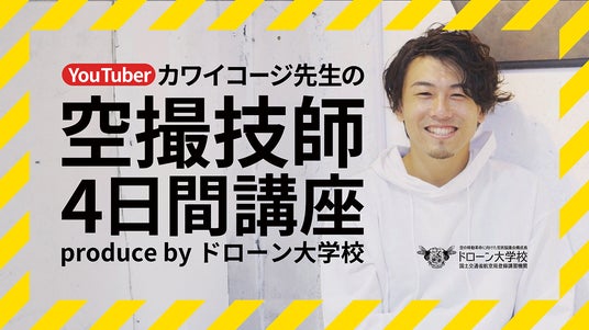 ドローン大学校では「二等無人航空機操縦士技能証明書」取得と、空撮に必要な機材をフルパッケージし、YouTuberのカワイコージ氏が空撮・動画撮影・動画編集の講義を担当する講座を7月から開講します。