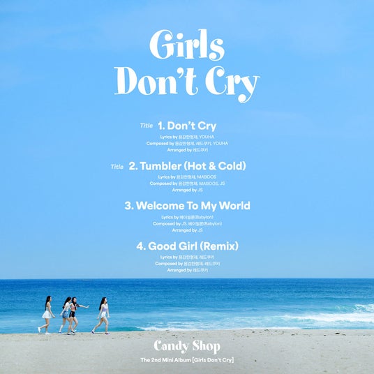 また、キャンディーショップは3日の正午、公式SNSを通して新たにトラックリストのイメージを公開した。清涼な海を背景に、歩いて行くキャンディーショップのメンバー達の姿から爽やかなエネルギーを感じる。トラックリストによると、今回のアルバムにはダブルタイトル曲の『Don’t Cry』『Tumbler (Hot & Cold)』を含む『Welcome To My World』『Good Girl (Remix)』等、計4曲が収録されている。2ndミニアルバム『Girls Don’t Cry』は、ダブルタイトル曲でキャンディーショップの一層成長した音楽面の才能を証明する。タイトル曲『Don’t Cry』は、大変な状況下にいる子たちに癒しと勇気を与える暖かいメッセージが詰め込まれた曲として、キャンディーショップならではの煌めく夏の日を期待される。また、もう一方のタイトル曲『Tumbler (Hot & Cold)』は、愛の情熱と不安定な感情をテーマとし、キャンディーショップの新しい音楽スタイルを感じることができる。一方、キャンディーショップの新しいミニアルバム『Girls Don’t Cry』は、今月の12日午後6時に発売を予定、発売前の7日にタイトル曲『Don’t Cry』のミュージックビデオを先行公開し、カムバックへの士気を高める。