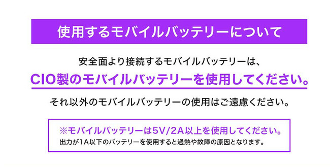 ⇒ CIO製品のモバイルバッテリーのご利用を推奨しています。