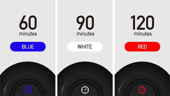 低温にてご使用いただいた場合、10000mAh搭載のSMARTCOBY Proで連続使用120分を×3回前後ご利用可能。60分・90分・120分のタイマー設定で消し忘れがありません。