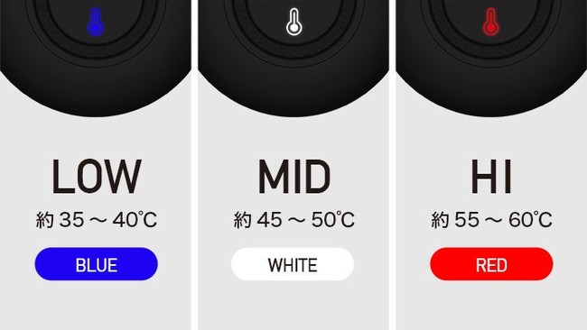 使用場所や気温、体調によってリモコンで3段階の温度調節が可能。