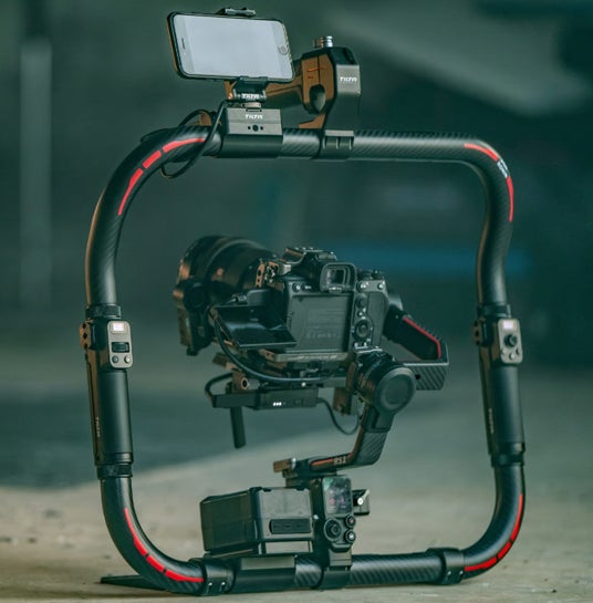 Tilta Float Dual Handle Support System (GSS-T03)Tilta Floatセットには、サポートベストとステディカムのような延長ポストを備えたスタビライザーアームが含まれている。 DJI RS 2ジンバル用に設計されており、ARRI Trinityと同じように機能するが、価格は低く設定されている。このシステムは、より重いセットアップで撮影する際の重量配分を支援し、カメラの操作を簡素化する。
