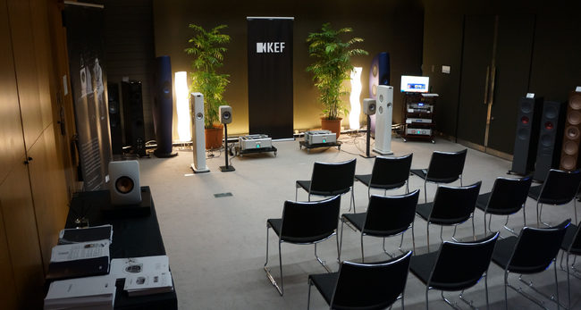1.KEFブースでのスピーカーの試聴体験会(ガラス棟6F「G607」)