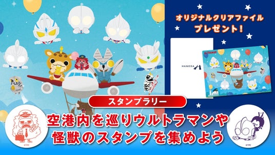 ウルトラマンや怪獣たちのスタンプを集めて、羽田空港限定オリジナルクリアファイル(B5)をゲットしよう!きみは何個スタンプを集められるかな?羽田空港内を巡ってスタンプを集めよう!