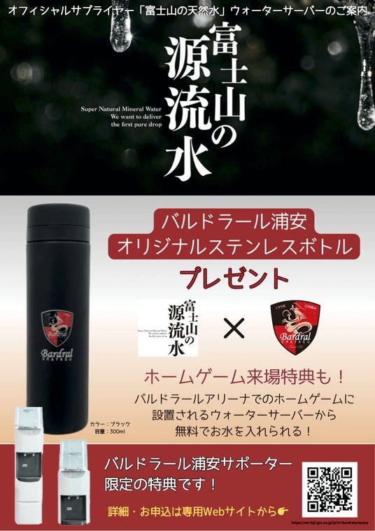 富士山の地下深くから採水したナチュラルミネラルウォーターのウォーターサーバーを設置いたします。バルドラールパークにご来場いただいた方は無料で試飲が可能です。ぜひお立ち寄りいただき美味しい天然水を堪能ください!!
