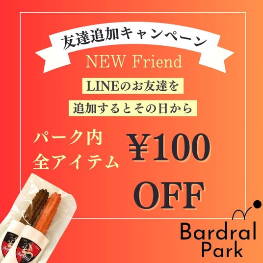バルドラールパークLINE公式アカウントがリニューアル!!お友だち登録していただいたお客様に、つづみ団子ブースでお支払い金額の100円OFF!!