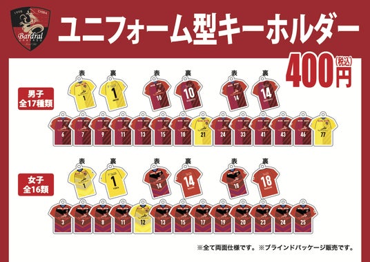 ▼バルドラール浦安ユニフォーム型キーホルダー(ブラインドパッケージ)男子全17種、女子全16種