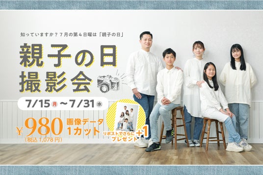 2024年で創業85周年を迎えた、東海地方の老舗写真館 株式会社タートル(本社:愛知県春日井市、代表取締役社長:亀山直樹)は、2024年7月15日(月)から、親子での撮影1カット980円で行うキャンペーン「親子の日撮影会」をタートルの全店舗で実施します。