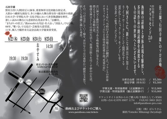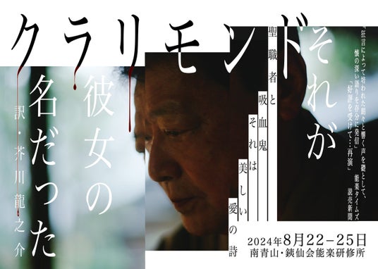 石田幸雄の『クラリモンド』は、その道を極めることによって培われた技術と経験を存分に駆使し、朗読劇という枠を凌駕した独自の語り手法を用いて、能舞台に芥川龍之介の名文を立ち上がらせます。