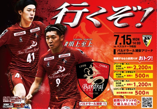 <バルドラール浦安ホームゲームチケット販売開始> Fリーグ2024-2025 ディビジョン1 第7節 7月15日(月祝)ペスカドーラ町田戦チケット一般販売に関するお知らせ