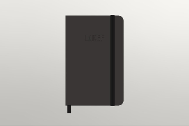 表紙にKEFのロゴが入ったオリジナルノート。高級感があり、ビジネスにもプライベートにもお使いいただけます。10万円以上(税込)のご購入でプレゼントいたします。
