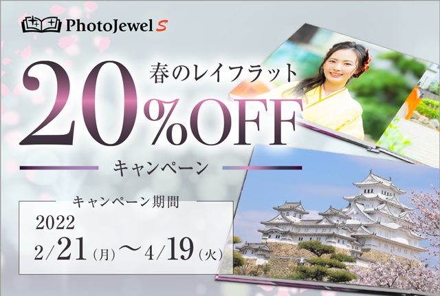 キヤノンマーケティングジャパン株式会社(代表取締役社長:足立 正親)は、選んだ写真を自動でレイアウトし簡単にフォトブックを仕上げるフォトブックサービス“PhotoJewel S(フォトジュエル・エス)”で、「春のレイフラット 20%OFFキャンペーン」を実施します。