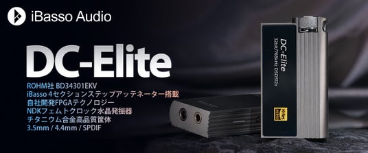 ROHM社BD34301EKV DACチップを搭載し、ボリュームにはiBasso自社開発4セクションステップアッテネーターを採用し、ポータブルプレーヤー製品に匹敵するアーキテクチャをこのコンパクトなサイズ感に踏襲しました。iBassoの”MAXシリーズ”にも通ずる、最先端の技術と最新鋭のパーツを採用し、筐体にはチタニウム合金を採用し開発されたDC-Eliteは、”コンパクトなMAX”という異名を持つ、フラッグシップに相応しい製品です。