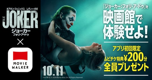 株式会社ムービーウォーカー(代表取締役社長:五十嵐淳之)は、この度、映画『ジョーカー:フォリ・ア・ドゥ』の10月11日(金)公開を記念し、「社会現象を巻き起こした“衝撃作“、再び。『ジョーカー:フォリ・ア・ドゥ』を映画館で体感せよ!MOVIE WALKERアプリコラボキャンペーン」をスタートしました。