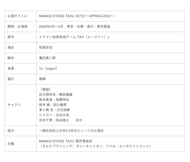 ■MANKAI STAGE『A3!』ACT2! 〜SPRING 2022〜公演概要