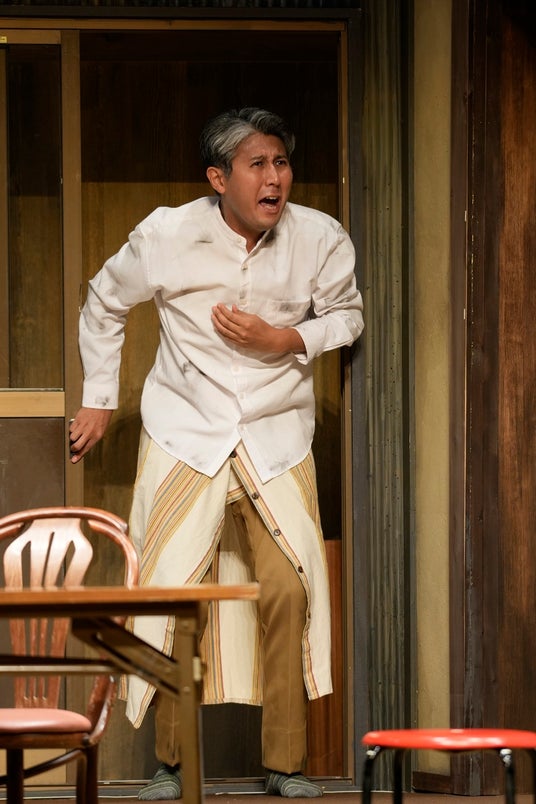 梨絵の仕事は派遣パートで、いつ首を切られるかも分からないため、やむをえず夫婦は裕樹の実家に身を寄せている。そこは裕樹の唯一の肉親である父・鉄斗が運営している寂れたネジ工場であった。鉄斗役の星田英利は今回唯一2019年の公演から続投での出演となるが、父のキャラクター性は前回とは全く変えているという。昔ながらの頑固親父といった風貌の鉄斗とは、梨絵はおろか、裕樹もろくに目を合わせられずにいた。ギクシャクした親子関係が冒頭から見て取れる。