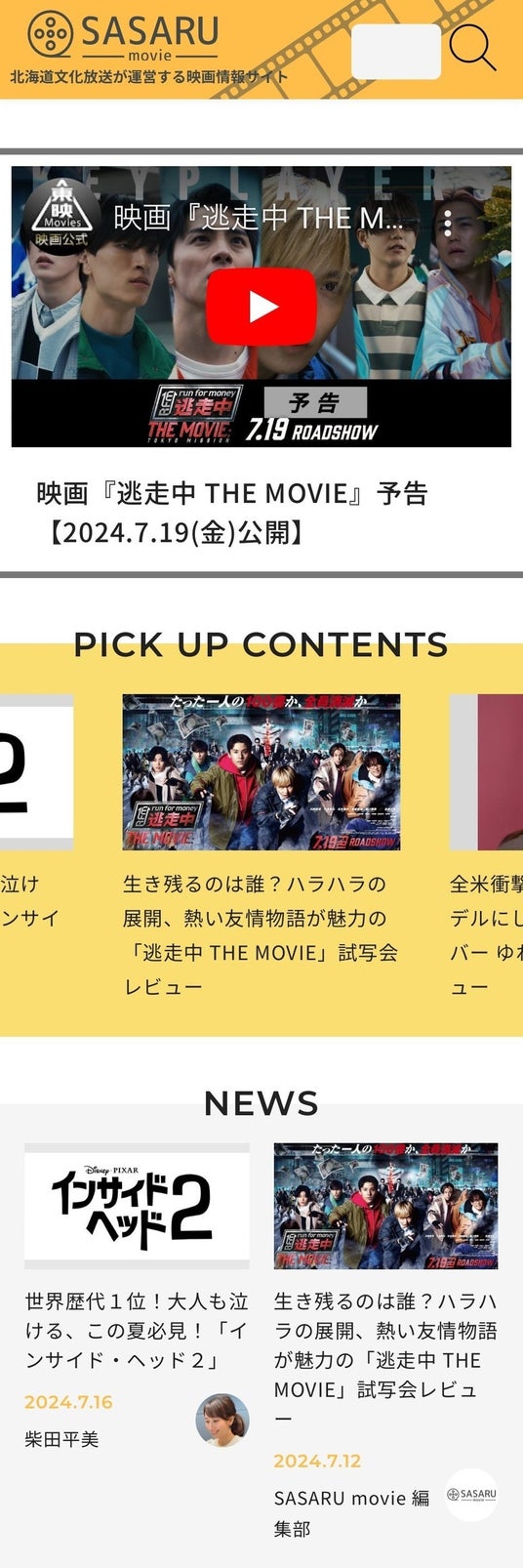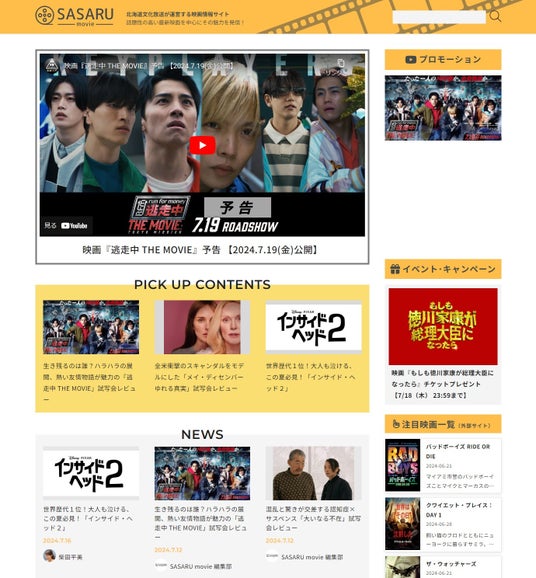 北海道発!テレビ局による映画情報サイト「SASARU movie」リリース
