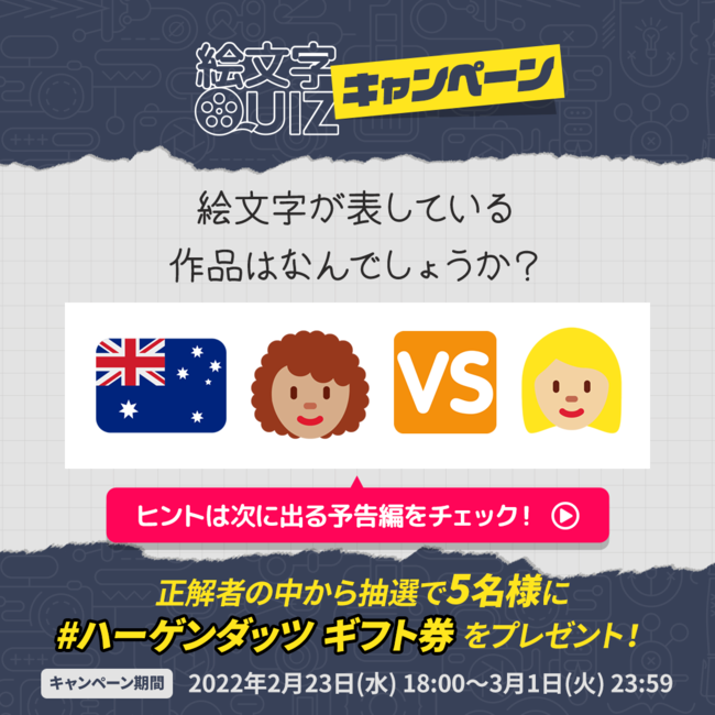 参加方法:1.「watcha_jp」アカウントをフォロー 2.キャンペーン投稿にいいねする 3.絵文字クイズの回答をコメント欄に記入