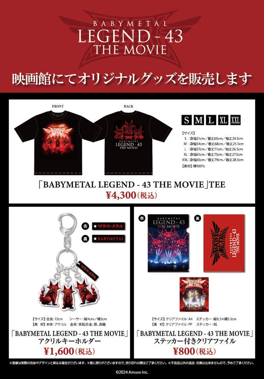 『BABYMETAL LEGEND - 43 THE MOVIE』映画オリジナルグッズ解禁&メンバーサイン入りポスター映画館ツアー決定!