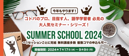 日本映像翻訳アカデミー株式会社(本社:東京都中央区、代表取締役:新楽直樹、以下「JVTA」)は、映像翻訳者や語学学習者に向けたセミナー・シリーズ「JVTAサマースクール 2024」を開催します。2024年夏は「今年もやります!コトバのプロ、目指す人、語学学習者必見の大人気セミナー・シリーズ!」と題し、映像翻訳を体験できるものから社会課題についての理解を深めるセミナーまで幅広く実施します。現在、JVTAのホームページにてセミナーの全ラインナップを掲載、参加申込を受付中です。