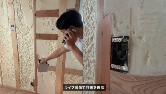 通常時は定点撮影する機能で進捗を確認し、細かい仕様の確認が必要な際はライブ再生機能に切り替えることで、これまで現場に行って確認していた作業を事務所で実施することができます。