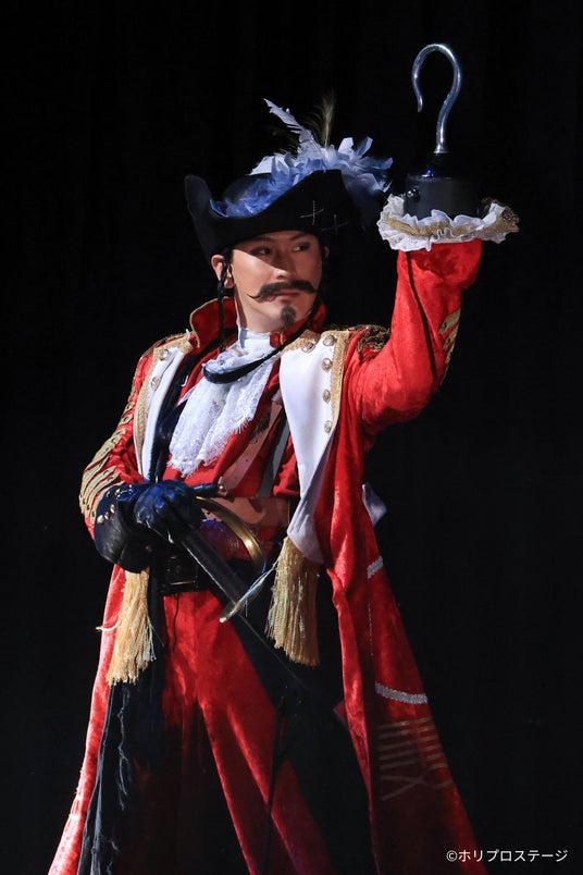 宿敵フック船長を演じるのは、ミュージカル『メリー・ポピンズ』のバート役やミュージカル『マチルダ』のトランチブル校長役など大役を次々と射止めている小野田龍之介。いやらしくずる賢い悪党であるフック船長を圧倒的な歌唱と生き生きとした芝居で表現し、今年も観客を魅了した。