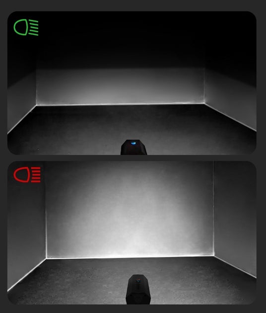 ワンボタンでハイビームとロービームを切り替え、路面状況に応じて最適な明るさで照らします。視認性を保ちつつ、他の車両や歩行者への眩しさを抑えます。