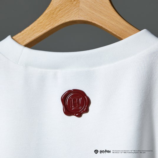 Tシャツと同じく、後ろ身頃の襟ぐり下にはシーリングスタンプ」をイメージした立体的プリントが施されており、シャツ全体を通して「ハリー・ポッター」の世界観を感じていただけます。