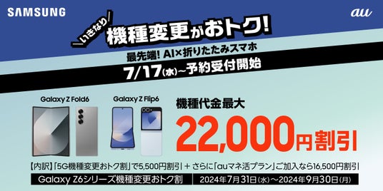 〜au「Galaxy Z Fold6」「Galaxy Z Flip6」への機種変更で最大22,000円割引実施中〜