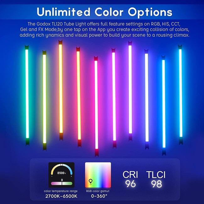 Godox TL120 RGBチューブライト新登場、詳しくに紹介させて頂きます。Godox TLシリーズのRGBチューブライトの新しいメンバーが来ました。たくさんの視覚的インパクトを自由的に創作することができます。これらのスタイリッシュなチューブ型ライトを試して、お客様の想像力を解放します。
