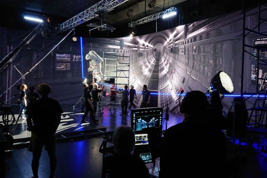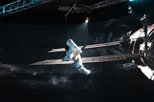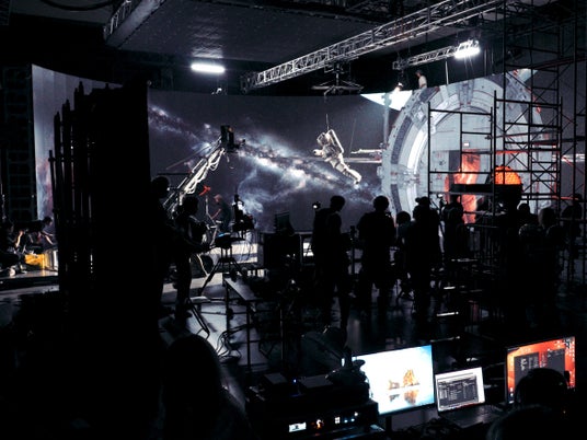 ※注 大型LEDディスプレイ、カメラトラッキングとリアルタイムエンジンを組み合わせた撮影手法のひとつ。主に3DCGで作成した背景(バーチャル背景)を大型LEDディスプレイに表示し、その手前に実際のオブジェクトや人物を配置してカメラで撮影することで、背景に映し出された場所で実際に撮影したかのような映像を制作する技術。